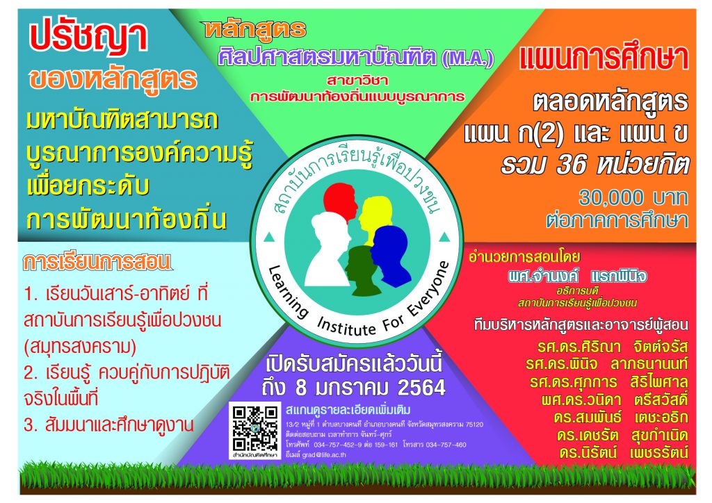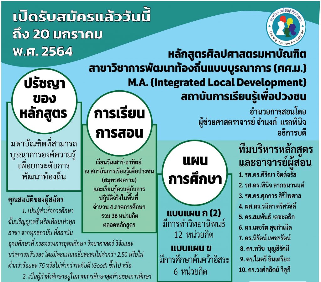 หลักสูตรศิลปศาสตรมหาบัณฑิต สาขาวิชาการพัฒนาท้องถิ่นแบบบูรณาการ (ศศ.ม.) M.A. (Integrated Local Development) สถาบันการเรียนรู้เพื่อปวงชน