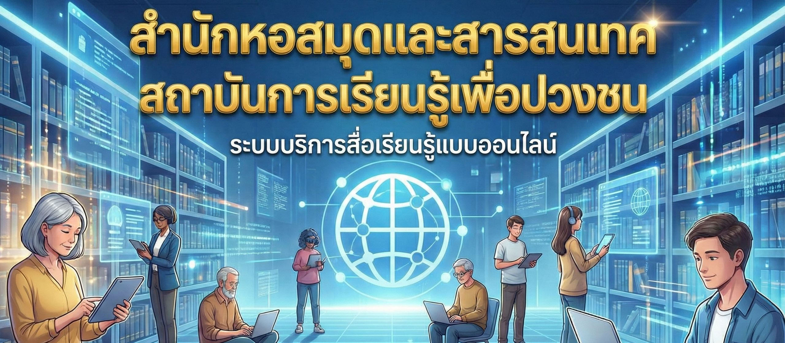 หนึ่งคลิก…สู่โลกแห่งการเรียนรู้ไม่สิ้นสุด ห้องสมุดออนไลน์ที่เปิดประตูสู่ความคิดใหม่ ๆ และโอกาสที่ไม่มีที่สิ้นสุด อ่านวันนี้ เปลี่ยนอนาคตพรุ่งนี้ เข้าถึงหนังสือและข้อมูลคุณภาพ ผ่านบริการห้องสมุดออนไลน์ทุกเวลา